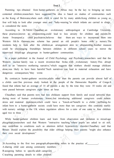 2024考研英语一完型填空真题