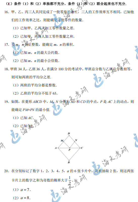 2025全国研究生初试已经全部结束,2025管理类综合能力大家考的怎么样呢?知道大家都在关注2025考研真题及答案解析,海天考研网为各位考生带来2025管综199考研真题完整版,包括管综199问题求解、条件充分性判断、逻辑推理、论证有效性分析和论说文写作,助力各位学子考研初试后核对答案提前估分,2026考研生也可以提前了解一下。